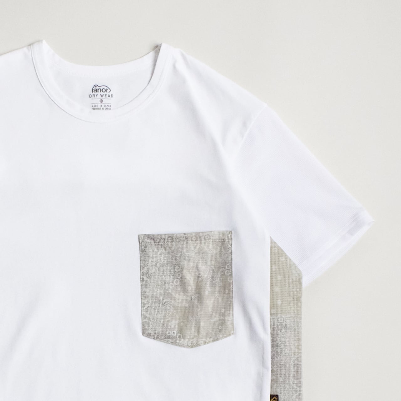 異素材の組み合わせで仕上げた、ranorのバンダナTシャツ。