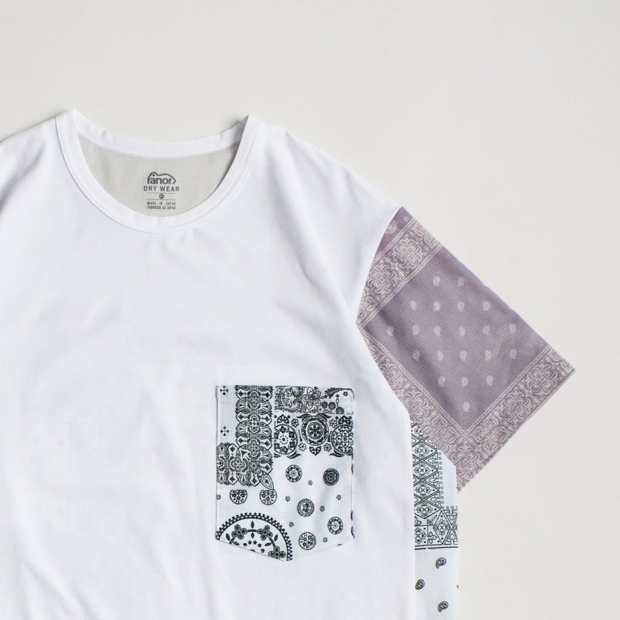 異素材の組み合わせで仕上げた、ranorのバンダナTシャツ。