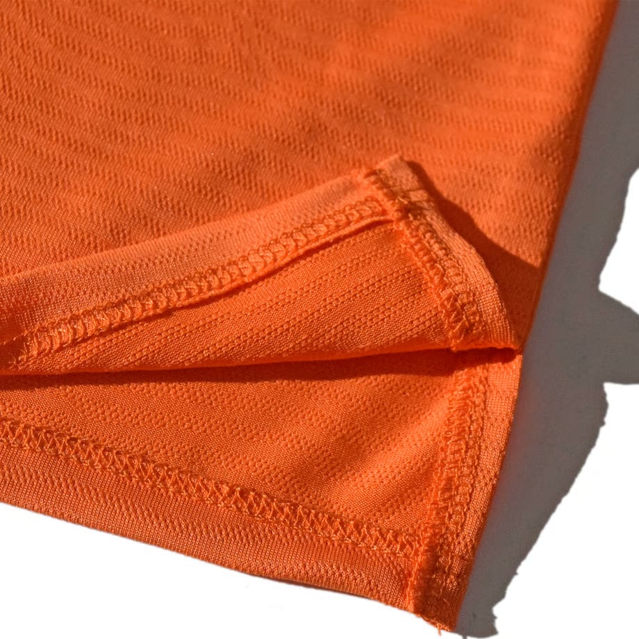 今回は吸水速乾性を持ちながらも風合いの良い、ポリエステル製のメッシュ素材を採用。