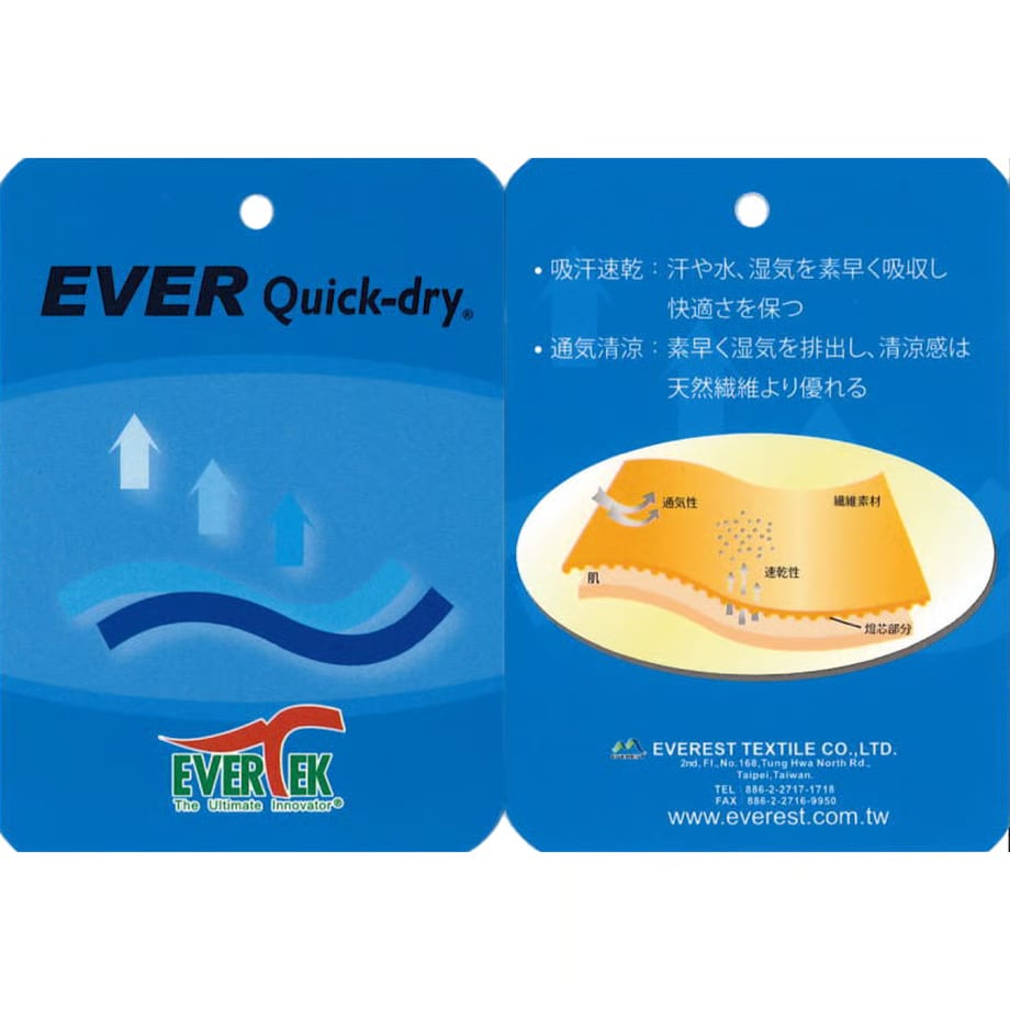 「エバークイックドライ」は、特殊3Dインナードット加工を施した機能素材で、吸湿性・速乾性の優れているスポーツウェア用の生地です。