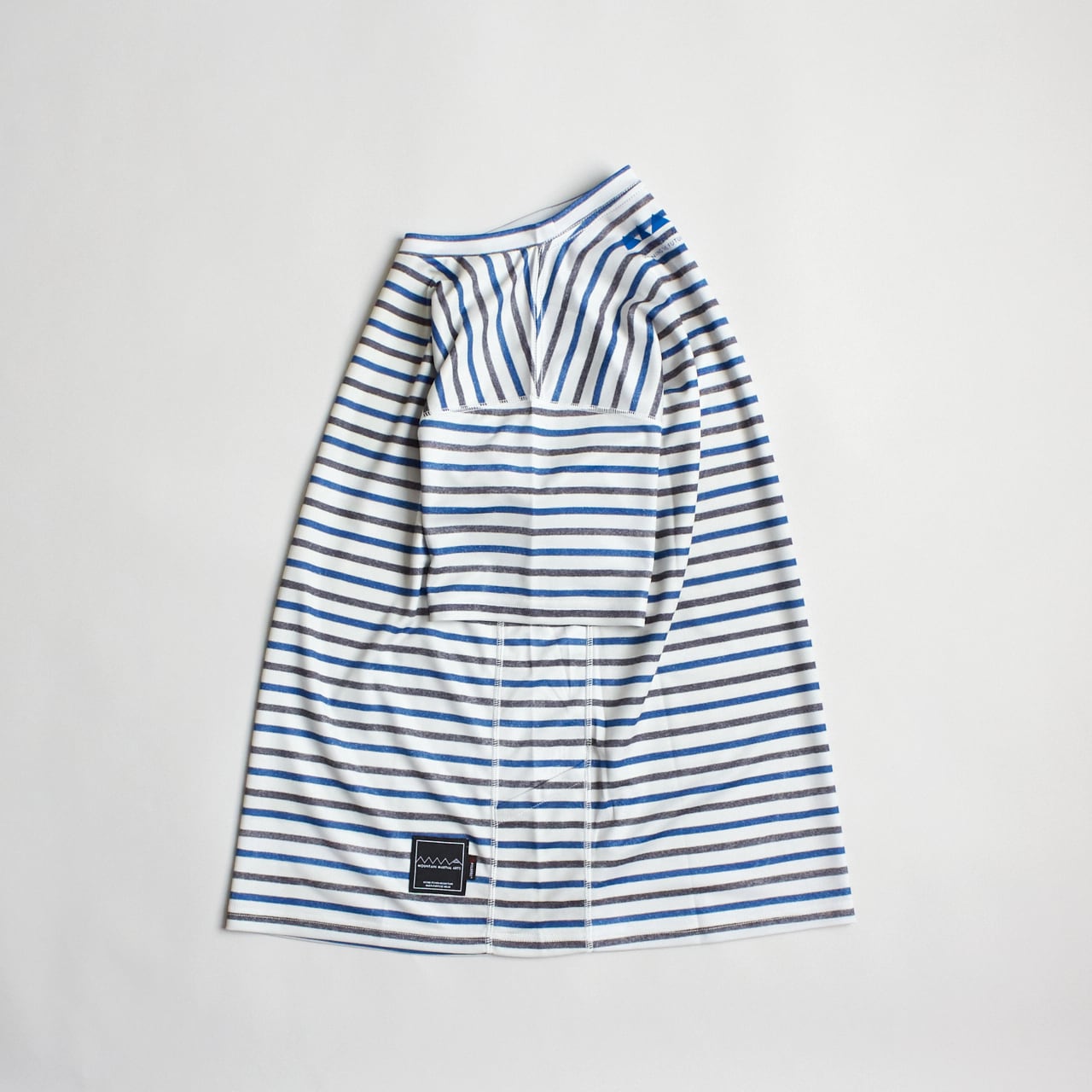 本体素材は、優れた吸水速乾性とUV カット機能を備える「POLARTEC® Power Dry」。全面に “ボーダーの服”を機能を損なわない昇華転写プリント。織り目やシワもリアルに表現され、“味わい”が感じられる。しなやかで肌触りがよく、ライトアクティビティから長時間のヘビーアクティビティまで対応する。