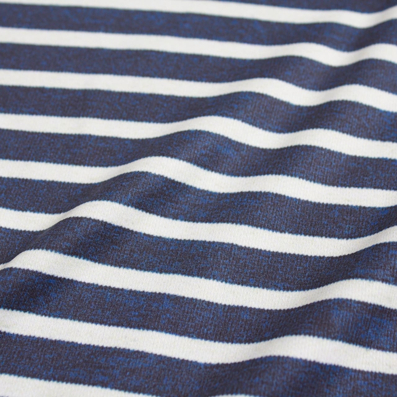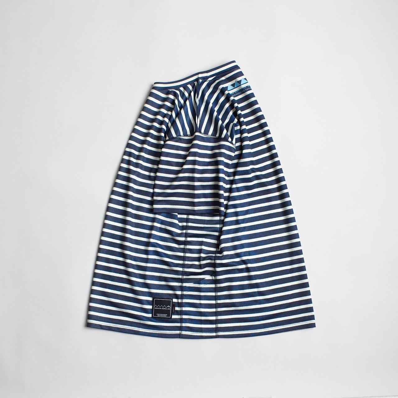 本体素材は、優れた吸水速乾性とUV カット機能を備える「POLARTEC® Power Dry」。全面に “ボーダーの服”を機能を損なわない昇華転写プリント。織り目やシワもリアルに表現され、“味わい”が感じられる。しなやかで肌触りがよく、ライトアクティビティから長時間のヘビーアクティビティまで対応する。
