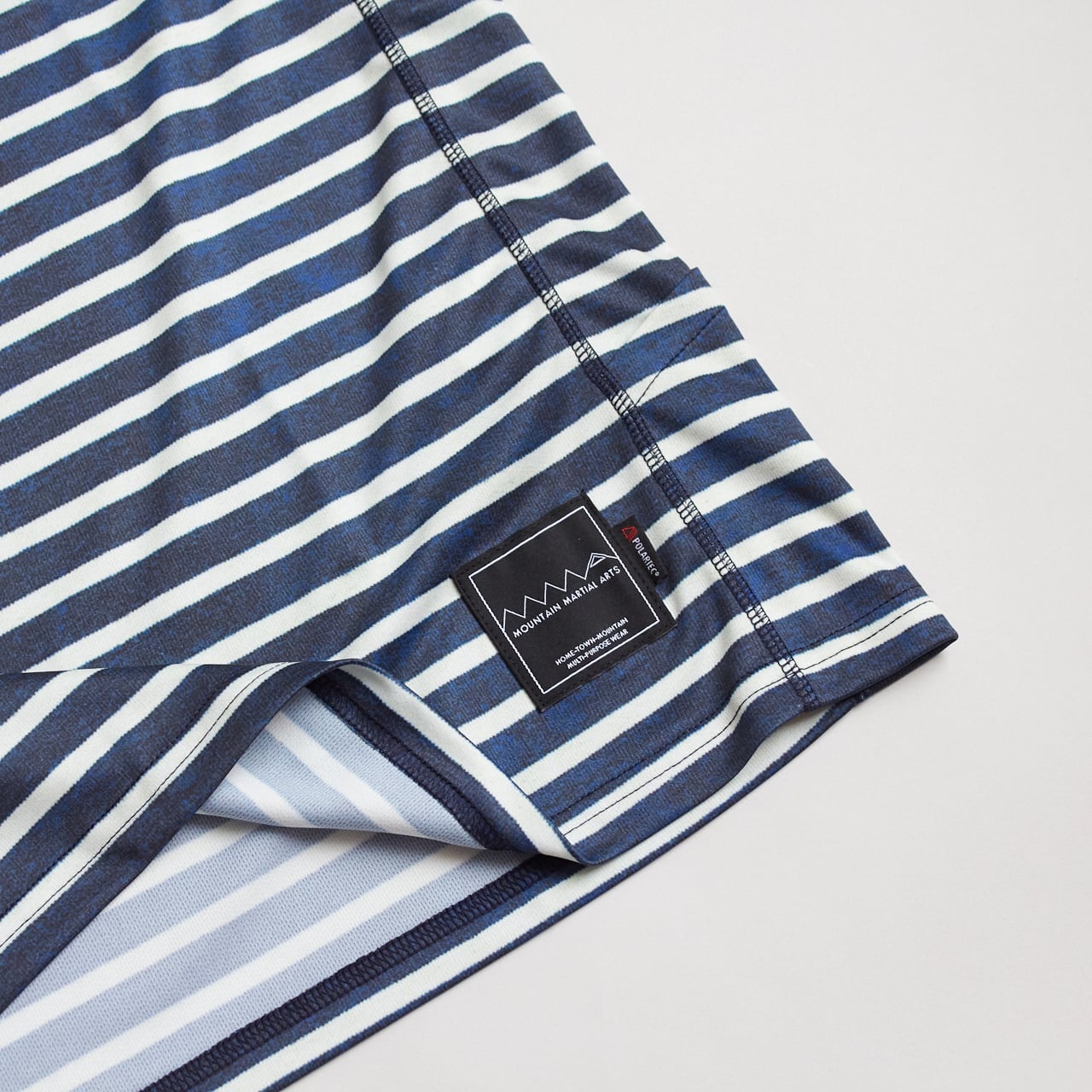 「POLARTEC®」の高機能素材「Power Dry」に “ボーダーの服” を全面プリント。山、街、ランとマルチに楽しめるMMA定番のボーダーTシャツ。