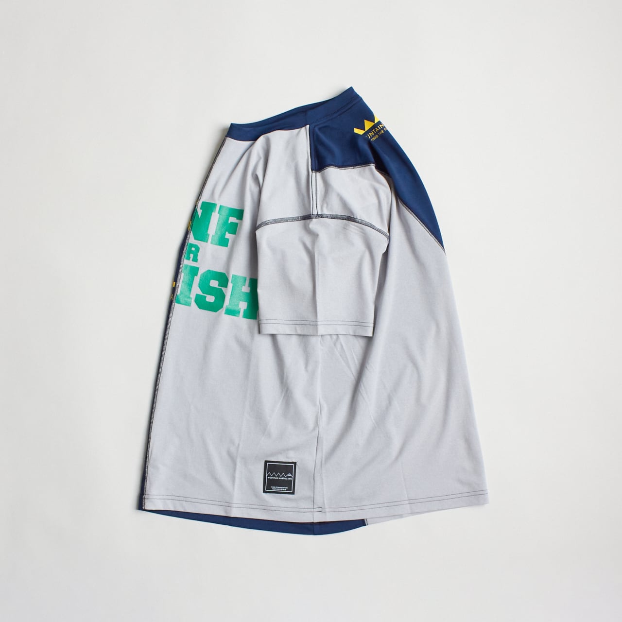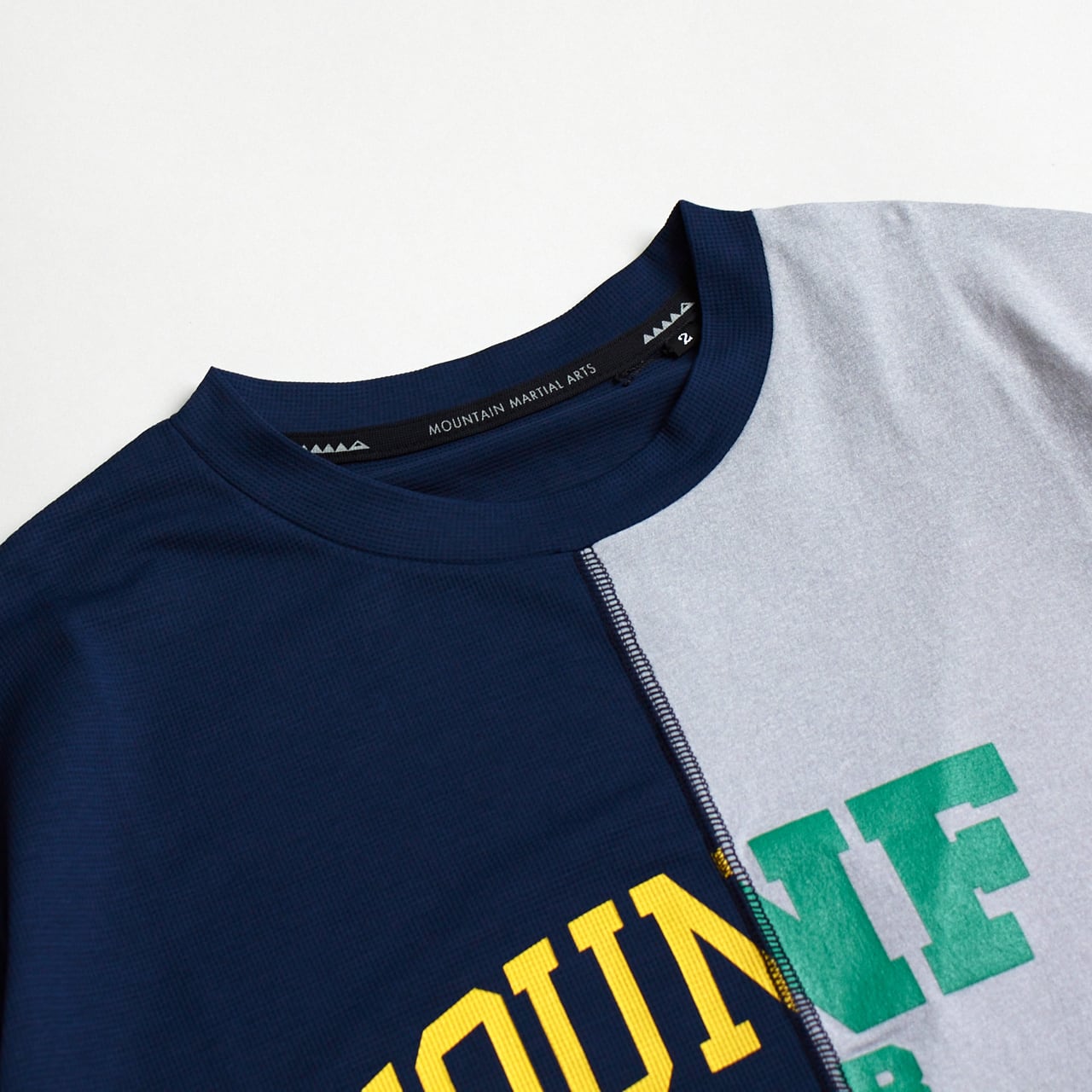 日本製のオリジナルボディは、アクティビティとタウンユースの両方にほどよくフィットするレギュラーシルエ ット。左右で素材を分け、 中央をフラットな縫い目で繋げている。