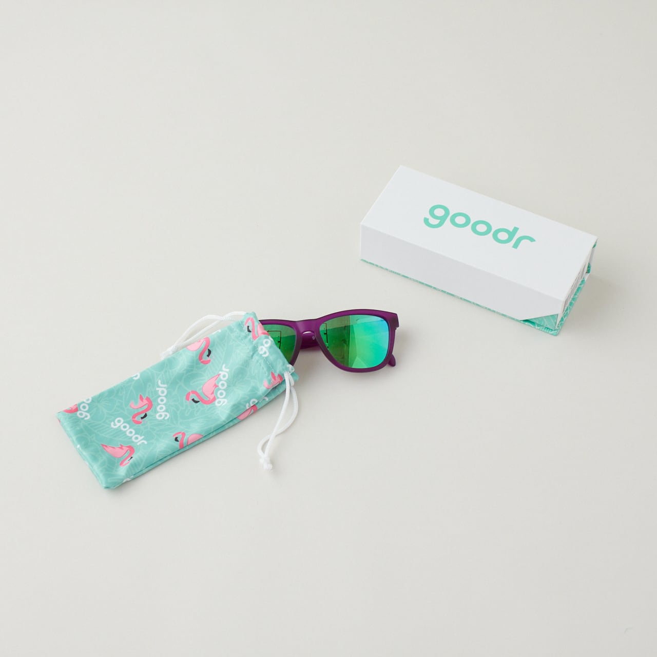 サングラスを入れているgoodr袋はマイクロファイバーのバックとなります。持ち運びはもちろん、お手入れにもぜひご利用ください。