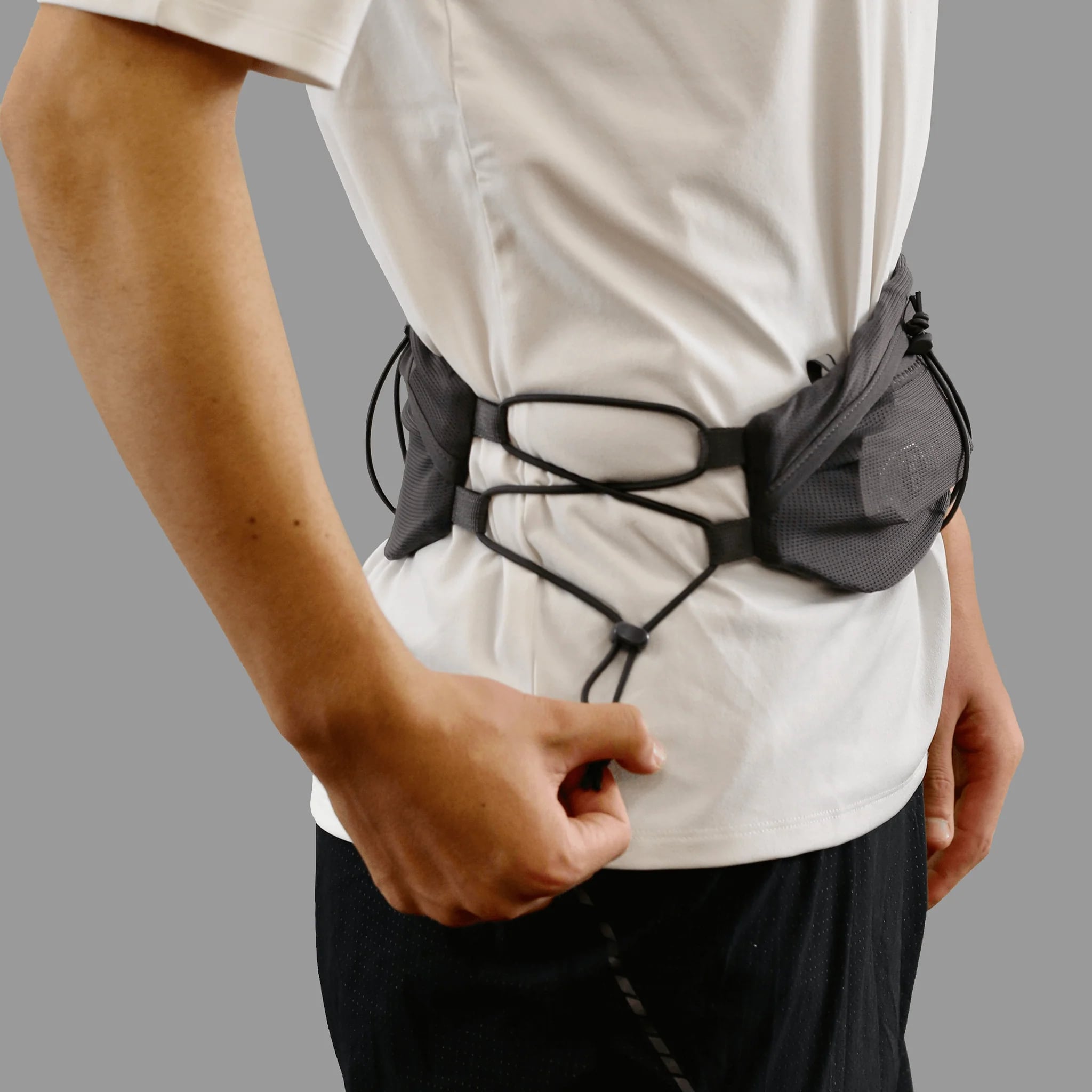 トレーニングからレースまで「かなり」使えるランニングベルト。ユニークな前後ダブルポケットにより、使い勝手の良さとフィット感を両立させました。