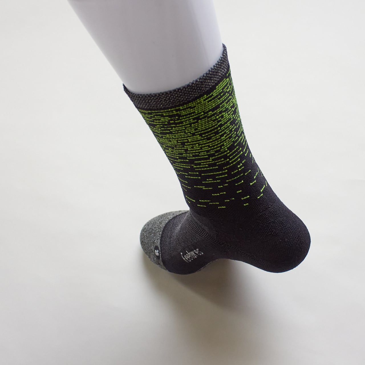 履き口にリフレクト素材の糸を使用し、暗い場所での視認性を高めたランニングソックス。