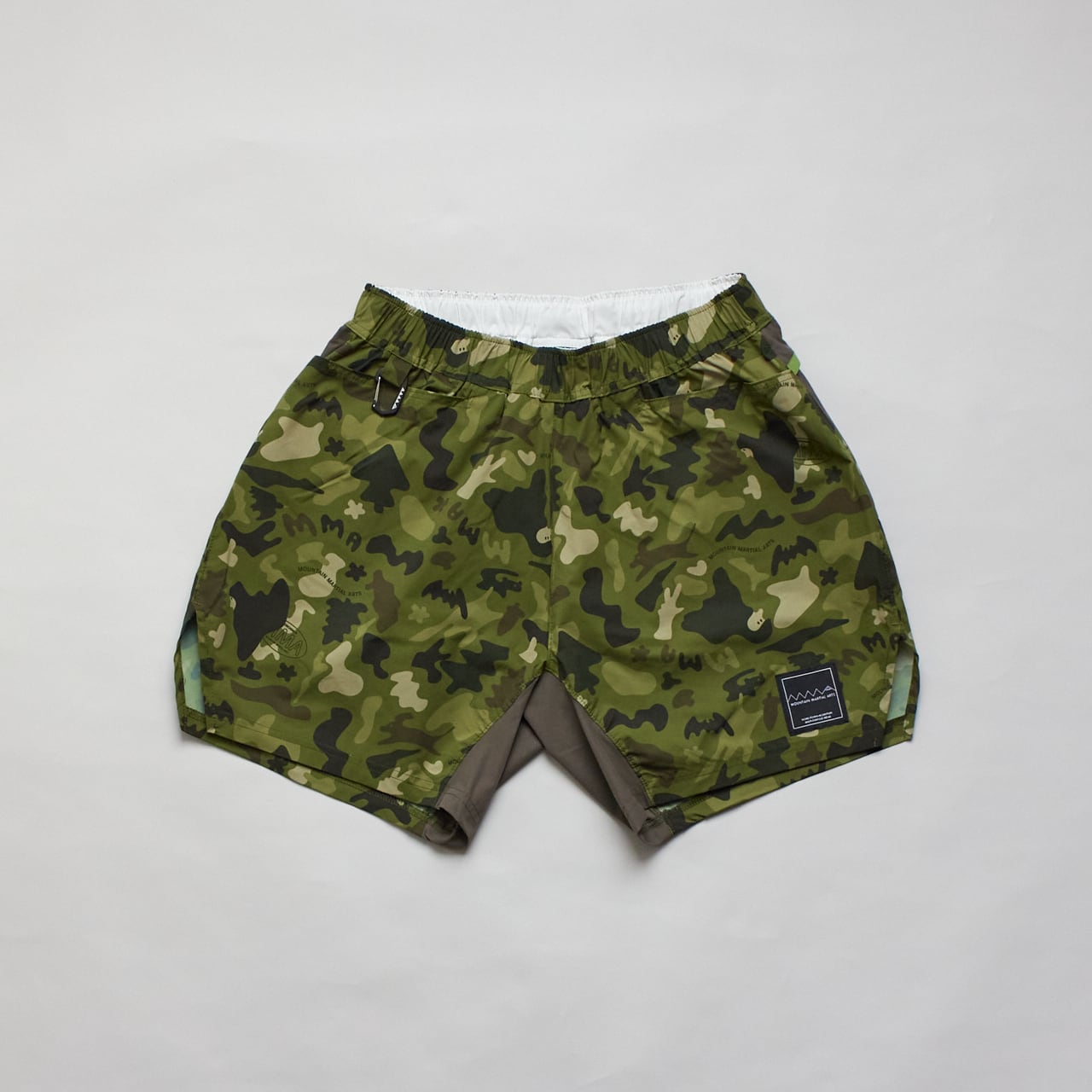 MMA(マウンテンマーシャルアーツ)Jerry Ukai PONCHOMAN CAMO Shorts -Green Camo メンズ・ウィメンズランニングショートパンツ