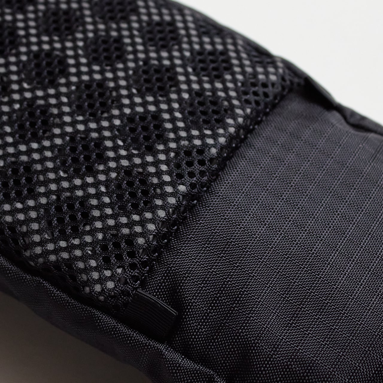 リップストップ織りに PU コーティングを施したナイロン生地は、摩耗に強く破れにくいほか、耐水性にも優れています。